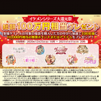 株式会社サイバードは、iOS/Android™搭載端末向けに配信中の女性向け恋愛ゲーム「イケメンシリーズ」において、一年間の感謝を込めて、抽選で100名様に10,000円相当の無償ポイントまたはアイテムが当たる「イケメンシリーズ大還元祭」の実施を発表しました。