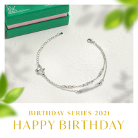 輝くラインストーンをあしらい、繊細な印象を残す二連ブレスレットに誕生日を刻んだプレートとシンプルかつエレガントなクラウンをセットしました。