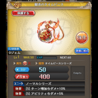 後はアクセ効果が如何なものかといったところですが、私の交換したタイムピースの効果は、”[5]ターン増加与ダメ+10%”と”[5]アビリティ与ダメ+5%”の2種類。