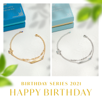 輝くラインストーンをあしらい、繊細な印象を残す二連ブレスレットに誕生日を刻んだプレートとシンプルかつエレガントなクラウンをセットしました。