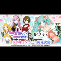 「駅メモ!」シリーズにおいて初音ミク「マジカルミライ 2021」の会場にチェックイン(位置登録)すると、初音ミクの限定フィルムなどのゲーム内アイテムが獲得できるデジタルスタンプラリーを開催します。また、新たに3体のピアプロキャラクターズのコラボでんこが入手できるガチャが登場します。さらに、過去に登場した初音ミクのコラボでんこが手に入るガチャや、コラボフィルムが手に入るガチャが再登場します。