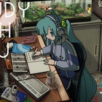 イラストレーター・飴日和さん描き下ろしによるループアニメーション内の『初音ミク』のように、心落ち着くローファイヒップホップを聴きながら勉強や作業に取り組みましょう!